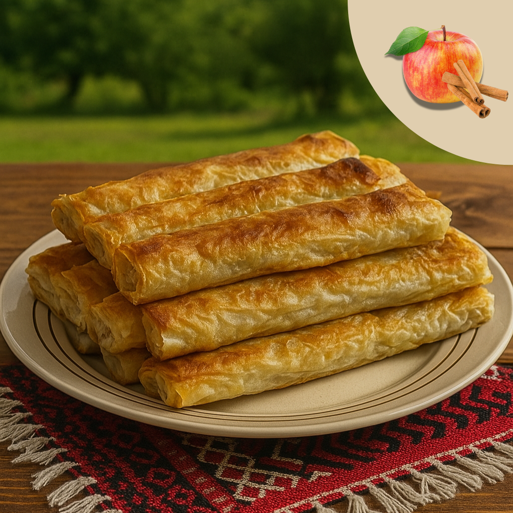 Пита са јабукама је најнежнији укус наше понуде. Пуњена ренданим јабукама са мирисним циметом и шећером, без термичке обраде — да остане онако сочна и пуна као кад је сама направиш.